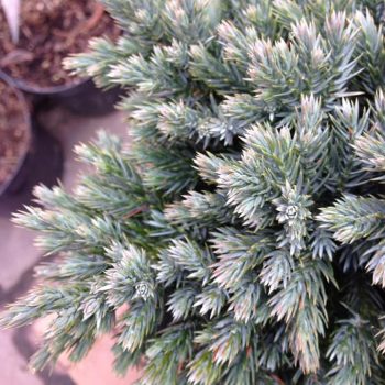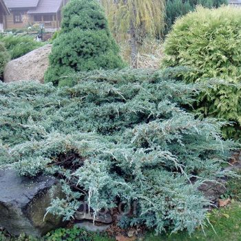 Красивий, грунтопокривний ялівець з лускатою, синьо-зеленого кольору хвоєю. Взимку може змінитися на бурий відтінок. Іноді він прикрашається темно-синіми шишками.