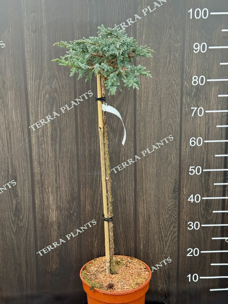 Ялівець штабмовий Squamata ‘Blue Compact’ — компактна декоративна хвойна рослина з щільною, подушкоподібною кроною та насиченою сріблясто-блакитною хвоєю. Завдяки формуванню на штамбі має акуратний, доглянутий вигляд і зберігає високу декоративність упродовж усього року.