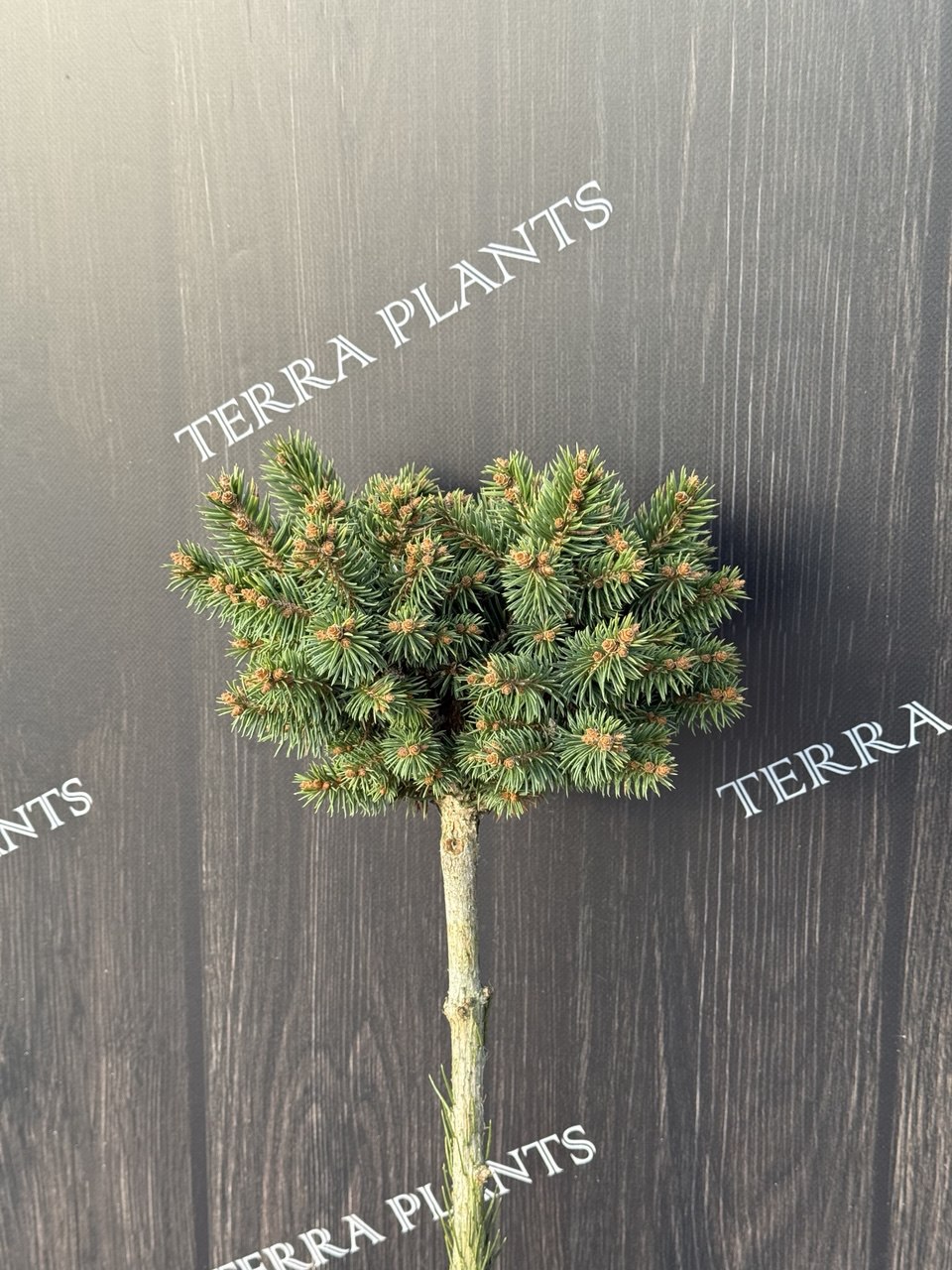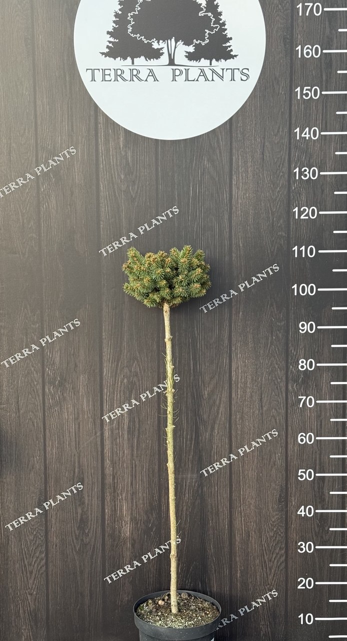 Ялина колюча штамбова ‘Darren’s Compact’ (Picea pungens ‘Darren’s Compact’) — щеплена декоративна форма на штамбі з надзвичайно щільною, компактною кроною та виразним сріблясто-блакитним забарвленням хвої. Ідеальний вибір для поціновувачів акуратних, преміальних хвойних форм.