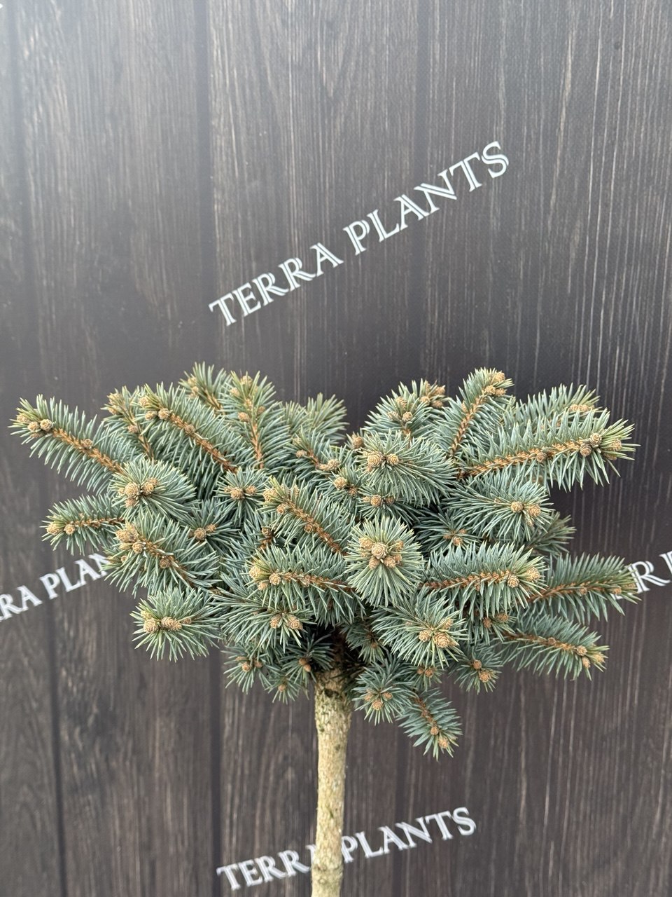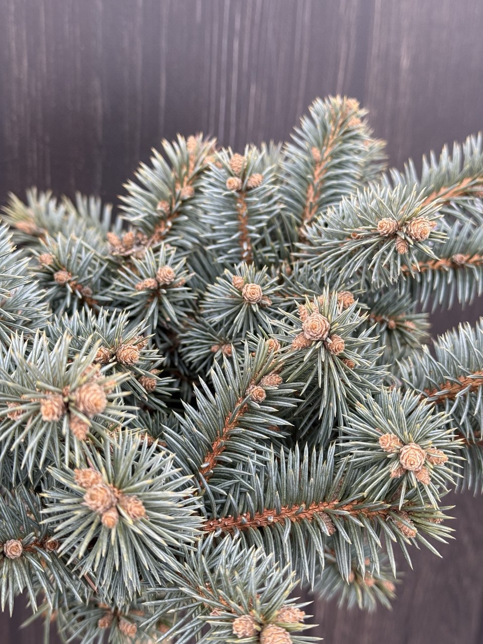 • Хвоя: коротка, жорстка, колюча, густо розміщена; інтенсивно сріблясто-блакитна, однорідна за тоном, зберігає насичений колір у всі сезони.
