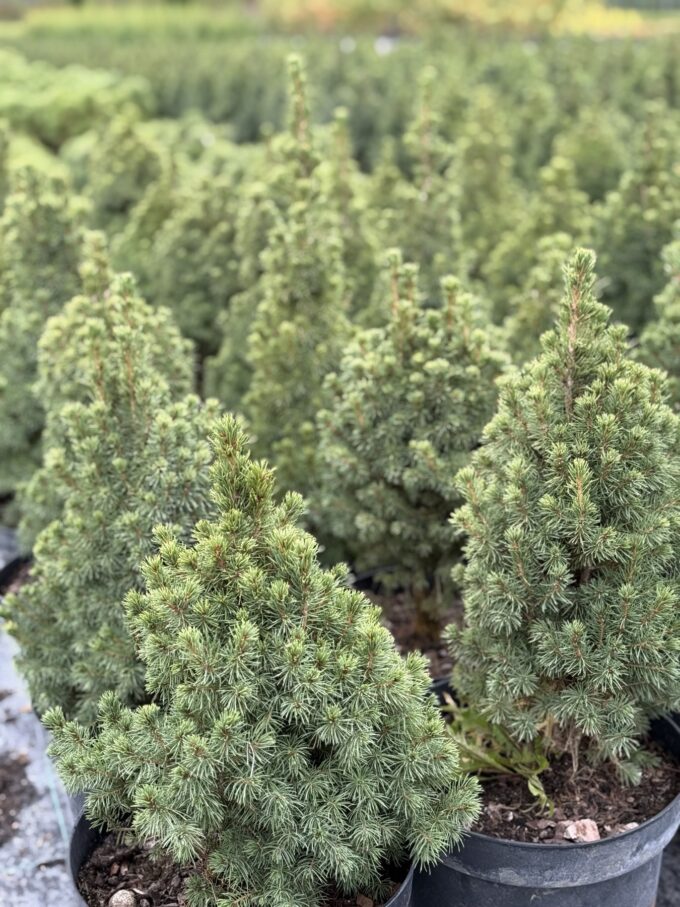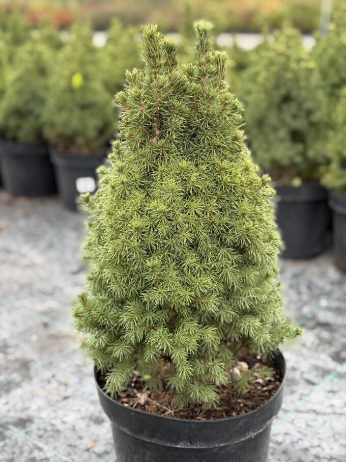 Ялина канадська “Conica” – карликова декоративна форма з природно густою, рівною, конічною кроною. Росте повільно, у віці 10 років досягає близько 1 м у висоту. Хвоя коротка, м’яка, насичено-зелена, з весни набуває яскравішого відтінку. Рослина морозостійка, тіньовитривала, надає перевагу родючим, дренованим, злегка вологим ґрунтам. Добре переносить формування та підходить для вирощування в контейнерах. Використовується у декоративному озелененні, в кам’янистих садах, композиціях і як акцентна рослина на газонах.