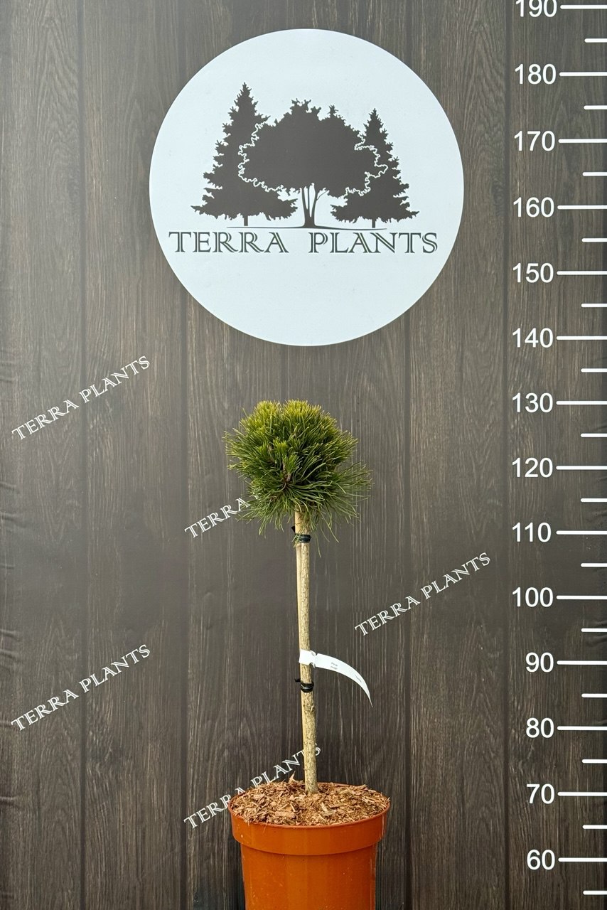 Сосна гірська Varella на штамбі — компактна декоративна хвойна рослина з густою, правильною кулястою кроною. Відрізняється повільним ростом, насичено-зеленою хвоєю та високою декоративністю протягом усього року.