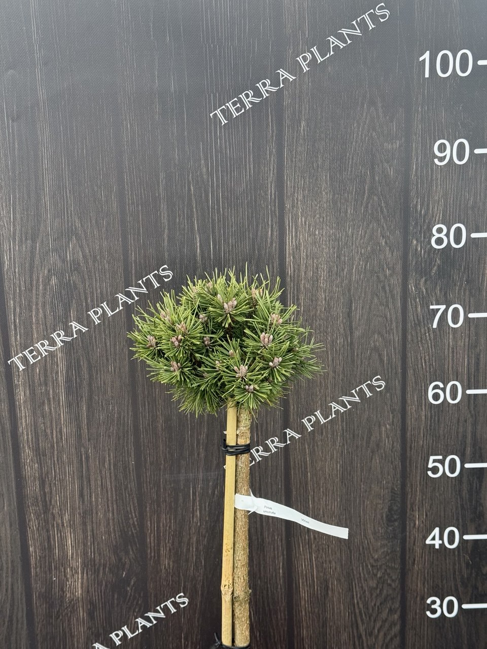 Сосна штабмова Uncinata ‘Wiel’ — декоративна хвойна рослина з компактною кроною та виразною формою, щеплена на штамбі. Завдяки повільному росту та густій, симетричній кроні ідеально підходить для сучасних садів, терас, балконів і ландшафтних композицій.